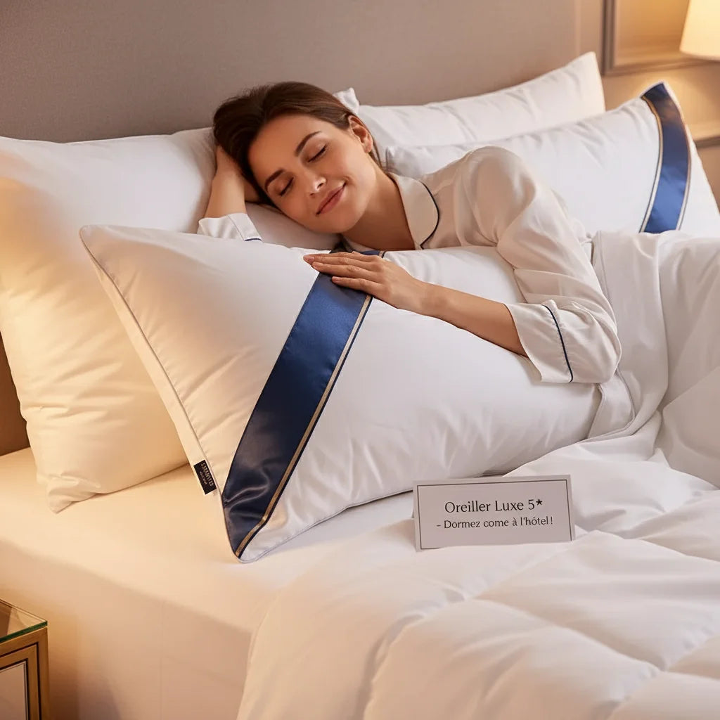 Fini les nuits banales. Chaque soir, plongez dans le confort d'un hôtel de luxe. Cet oreiller transforme votre chambre en suite 5★, un refuge de douceur et de prestige où le sommeil est divin.